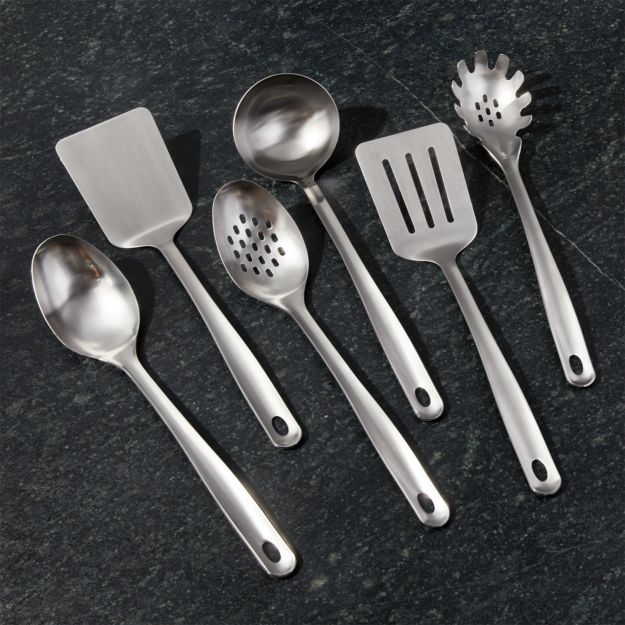 Crate And Barrel Brushed Stainless Steel Utensils Set Of 6