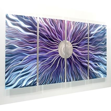 Large Blue Purple And Silver Metal Wall Art Painting Panel Art Wall Decor Wall Sculpture Modern Abstract Wall Painting Royal Static Blush