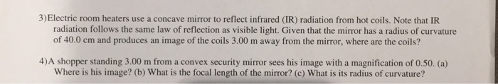 Solved 3 Electric Room Heaters Use A Concave Mirror To R