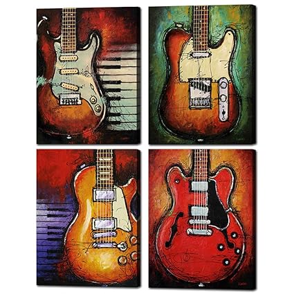 Amazon Com Abstract Guitar Music Wall Art Canvas Red Purple Prints