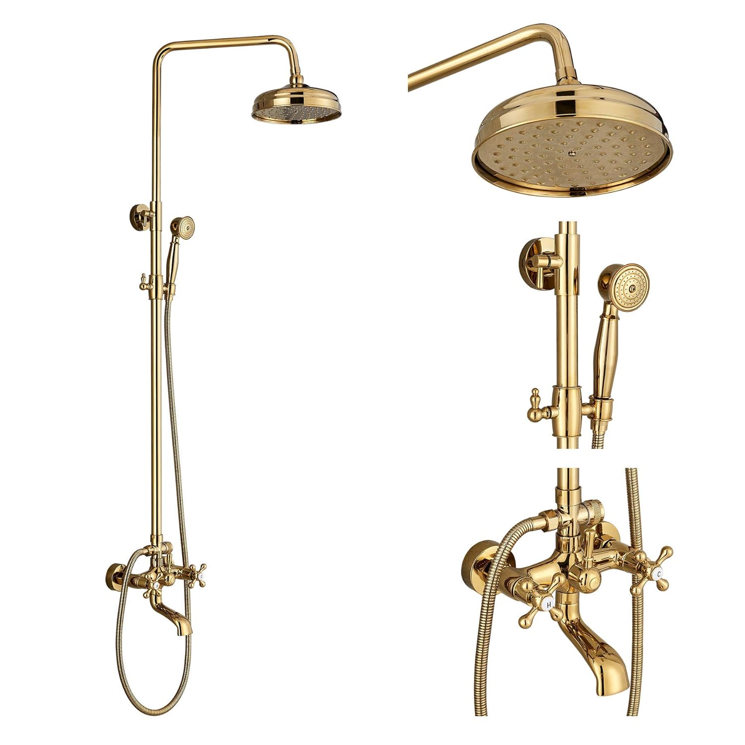 Rozin Bathroom Tub Shower Faucet Units 8 Inch Rainfall Shower Head With Handheld Spray Gold Polished