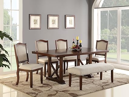 The wood used in the formal dining sets is crucial in establishing the theme of the room. The chairs take a little time to assemble but is a easy project comes with all the hardware directions and tools. Farmhouse style rectangular dining table and 6 side chairs with box cushions.