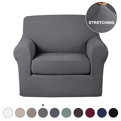 Turquoize 2 Piece Chair Slipcovers With Elastic Bottom Gray Sofa Slipcover Sofa Cover Furniture Protector For Living Room Arm Chair Cover With