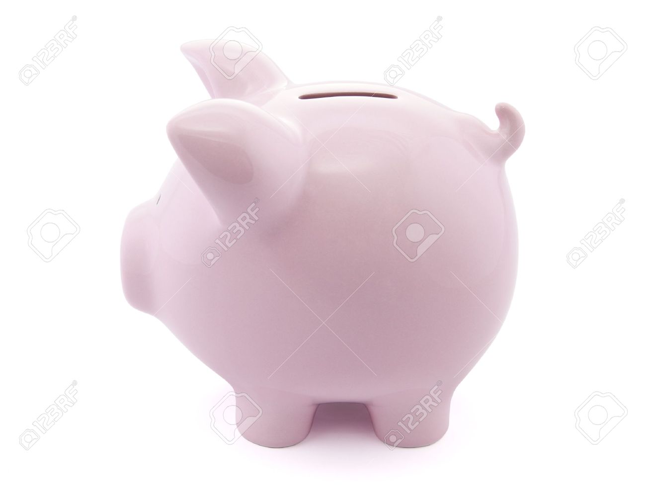 Side View Of Pink Piggy Bank With Clipping Path Stock Photo Picture