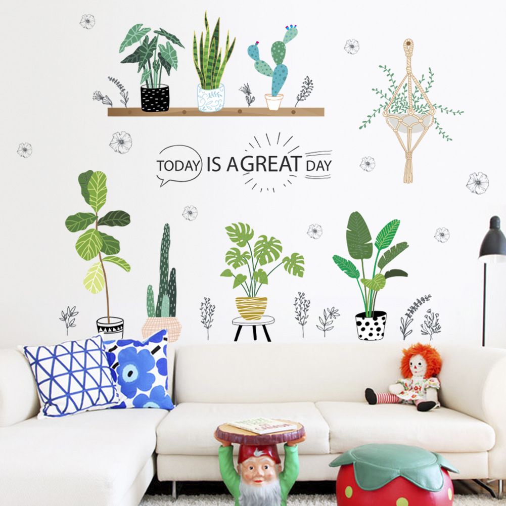 Cactus Wall Decal Pvc Green Plant Wall Art For Living Room Bedroom