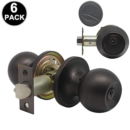 6 Pack Keyed Alike Entry Door Knobs And Single Cylinder Deadbolt Lock Combo Set Security For Entrance And Front Door With Classic Oil Rubbed Bronze