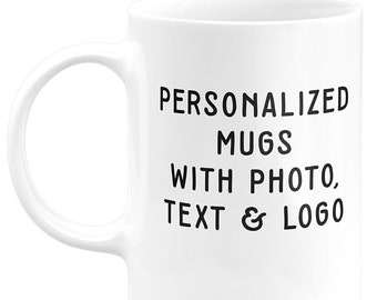 Custom photo mugs make perfect gifts for any special person for any occasion. Personalized add your custom text and photo white ceramic 11 oz coffee mug customizable gift.