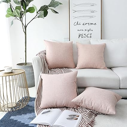 Home Brilliant Burlap Decoration Supersoft Linen Cushion Covers Square Throw Pillows Cover For Couch Baby Pink 45x45 Cm Set Of 4