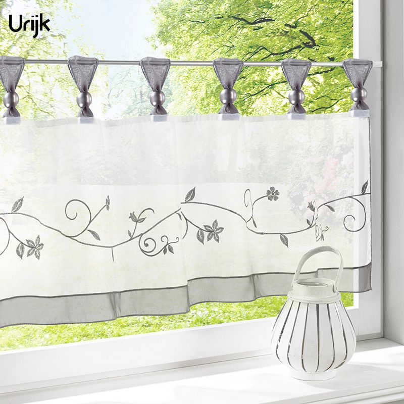 2019 Urijk Small Cafe Half Curtains Gray Color Pastoral Style Window