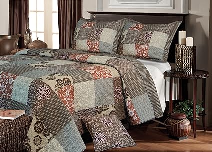 This quilt set is infused with colors of the southwest to give it a homely feel. Greenland home fashions is a leader in stylish bedding and curtains. Through constant developments and updates in traditional country and forward looking styles the company has become a leading supplier and designer of decorative bedding to retailers nationwide.