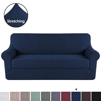 H Versailtex High Stretch Jacquard 2 Pieces Sofa Slipcover Sofa Cover Navy Couch Cover Large Furniture Sofa Slip Covers For Living Room Couch