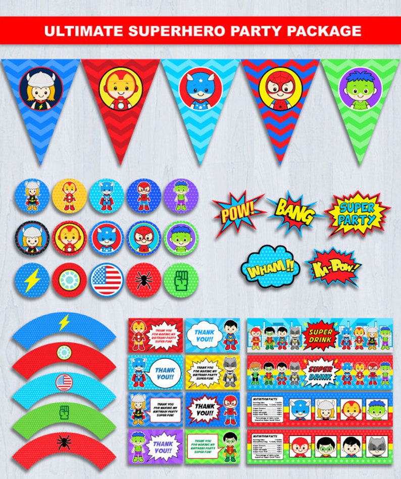 Superhero Party Superhero Party Decorations Superhero Party Printable Superhero Party Package Superhero Party Supplies