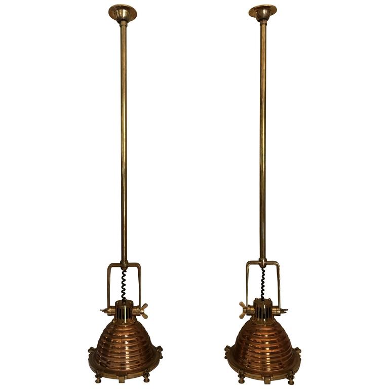 Brass And Copper Nautical Pendant Lights Pair For Sale At 1stdibs