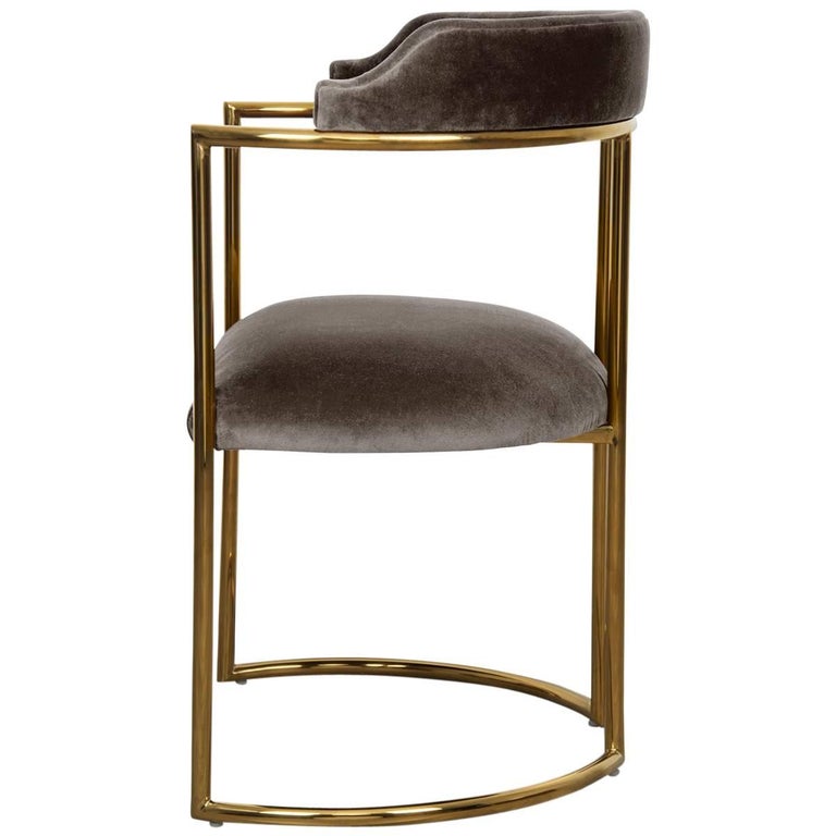 Modern Style Acapulco Dining Chair Brass Frame Dark Grey Velvet Upholstery