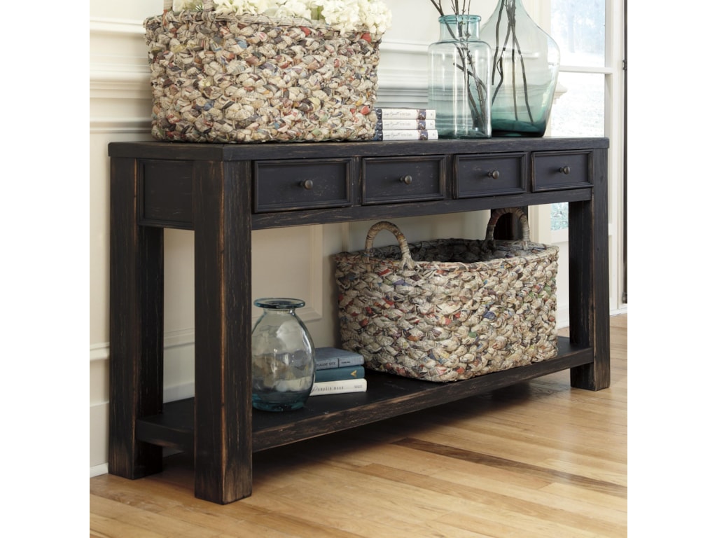 Gavelston Distressed Black Sofa Table With 4 Drawers Shelf By Signature Design By Ashley At Furniture And Appliancemart