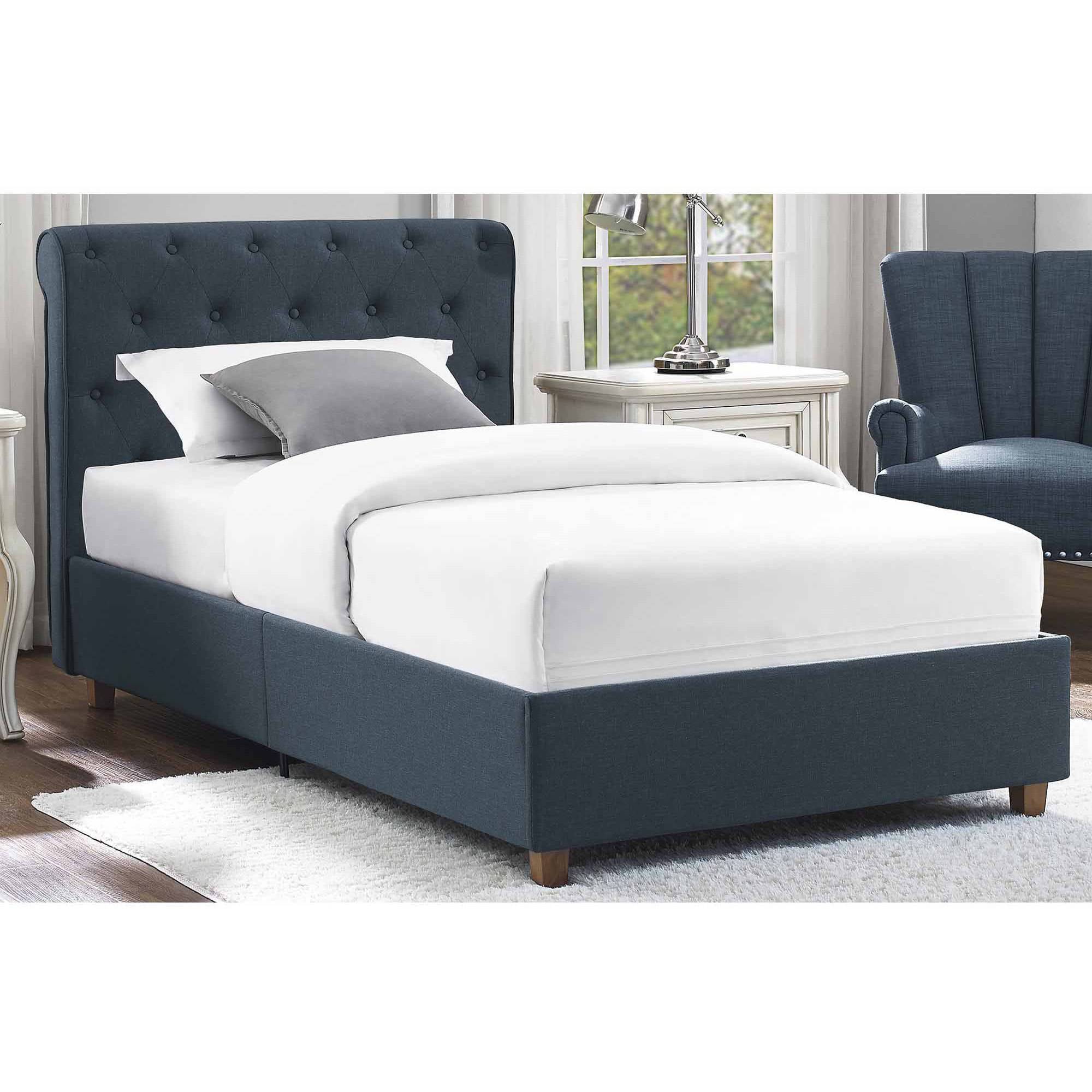 Dhp Carmela Linen Upholstered Platform Bed Navy Twin Walmart Com