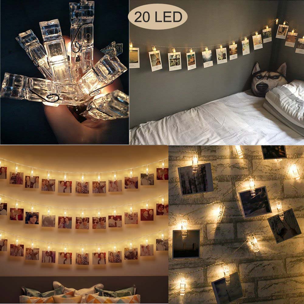 20 Led Photo Clip String Lights Home Decor Indoor Outdoor Battery