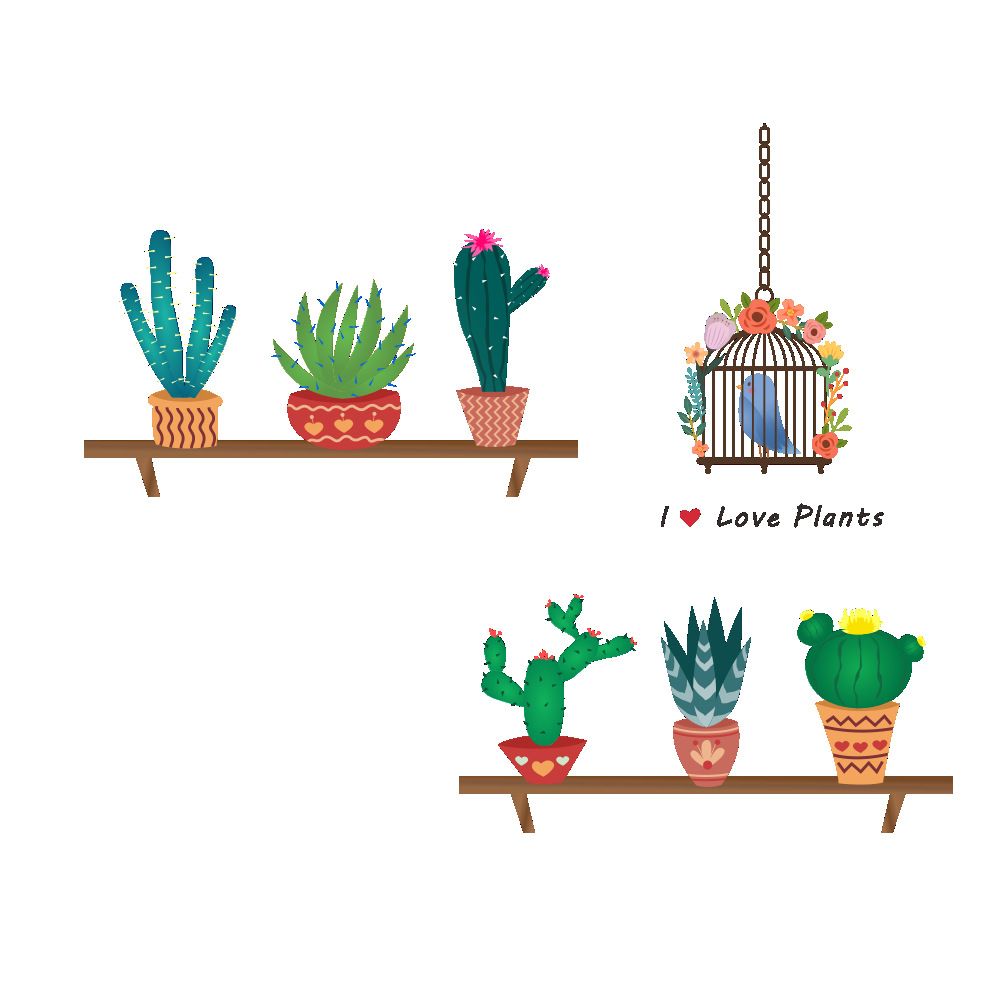 Wall Sticker Plants Diy Cactus And Bird Cage Wall Sticker Mural For