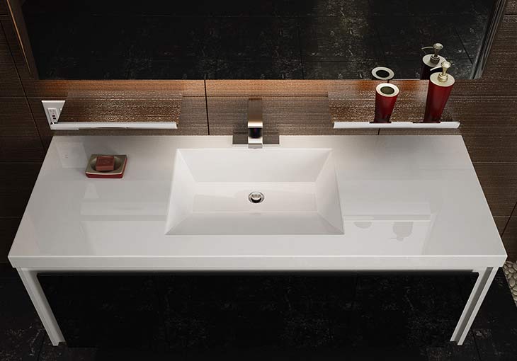 It combines the luxury of marble with the sleek flavor of metal to produce a contemporary fixture that has major attitude. From double sink vanities perfect for the morning rush in a high traffic bathroom to single hole vanity tops to house sleek modern faucet fixtures youll be swept away by our huge outpouring of options for your bath. Many different types of stone are used including slate soapstone limestone travertine marble onyx and granite.