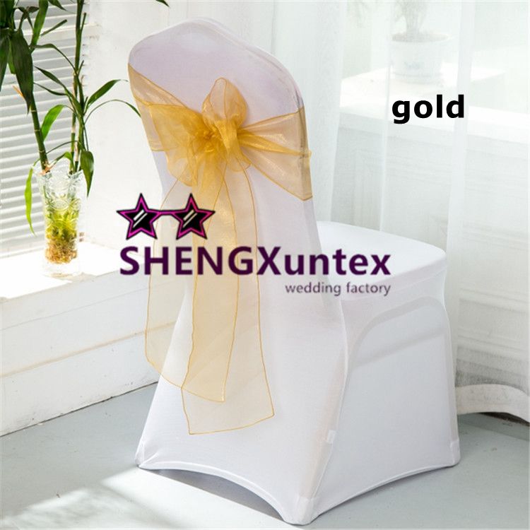 Hot Sale White Spandex Chair Cover With Gold Organza Chair Sash Lycra Chair Cover For Wedding