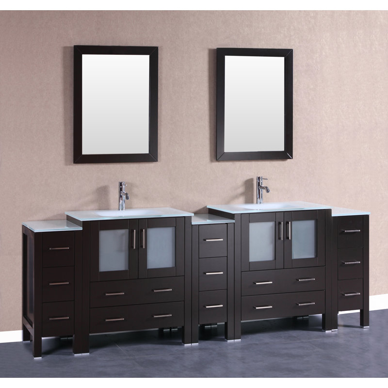 96 wide shiva double sink vanity 96 inch wide large bathroom double sink vanity. 188900 1889 00. Bring a contemporary design to your bathroom with this design element washington vanity in espresso with water resistant vanity top and mirror in black.
