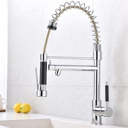 Vccucine Best Commercial Chrome Single Handle Pull Down Sprayer Kitchen Faucet High Arch Pull Out Sink Faucet