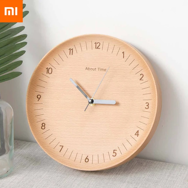 Original Xiaomi Mijia Mute Movement Round Wooden Wall Clock Non