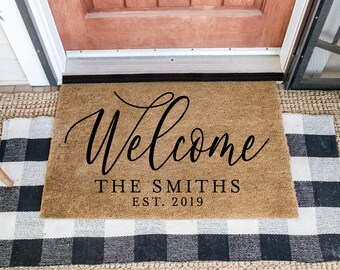 Hola Adios Custom Doormat Name Doormat New Homeowners Welcome Doormat Personalized Doormat Welcome Mat Custom Family Name Mat