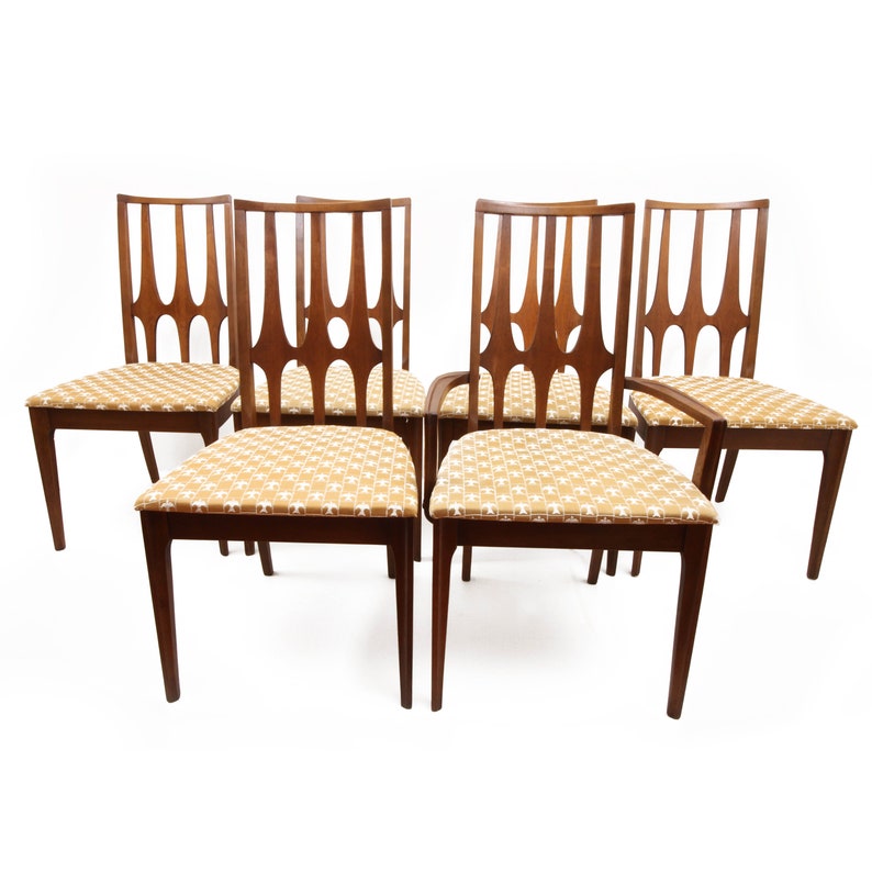 Broyhill Brasilia Walnut Dining Chairs Set Of 6 Sculpted Arch Backs Original Upholstery