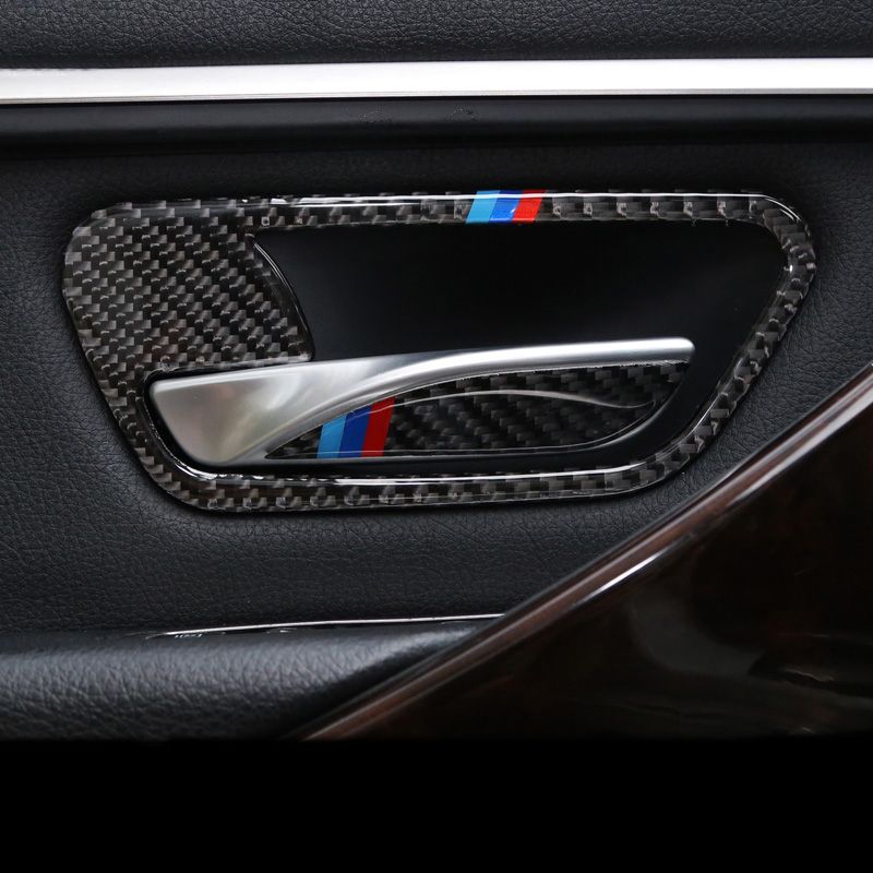 Carbon Fiber Car Interior Door Handle Cover Trim Door Bowl Stickers Decals Strips For Bmw 3 4 Series 3gt F30 F31 F32 F34 Styling Accessories