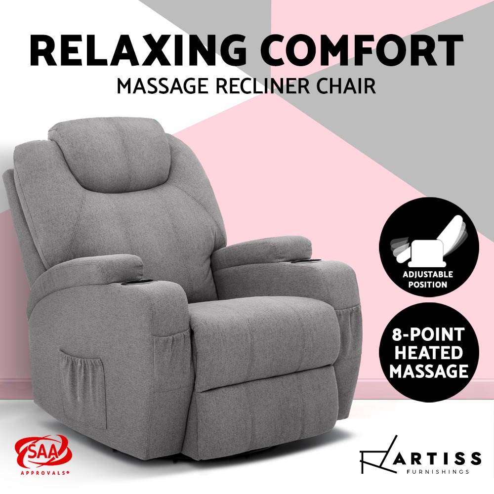 Details About Artiss Electric Recliner Chair Fabric Sofa Heated Massage Chairs Lounge Armchair