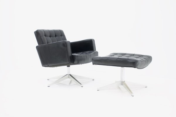 Leather Lounge Chair Ottoman By Vincent Cafiero For Knoll International 1960s