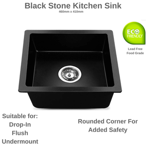 Details About Black Single Bowl Kitchen Sink Granite Stone Flush Drop In Undermount 46 X 41cm