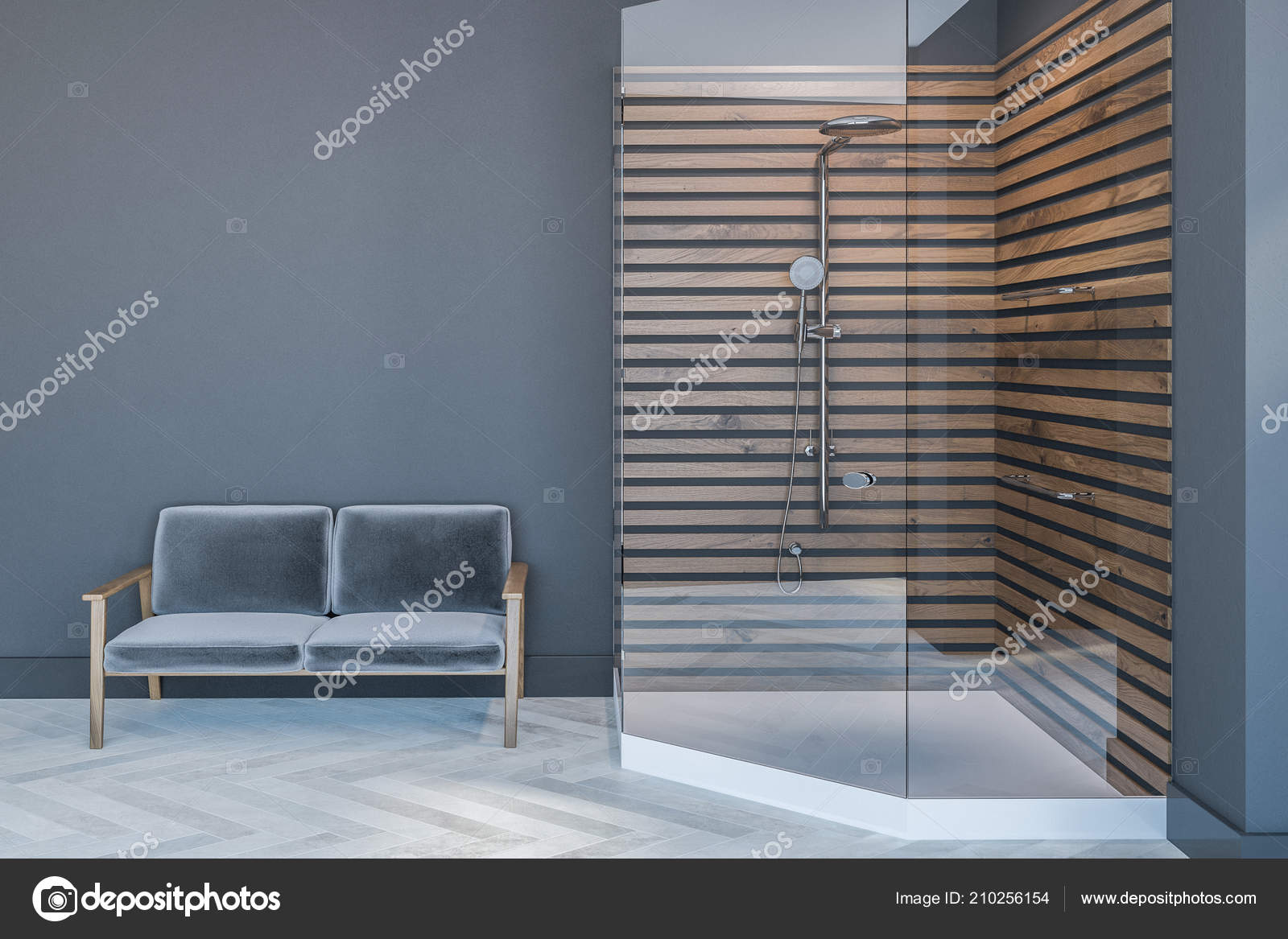Modern Gray Wall Bathroom Interior White Wooden Floor Wood Shower