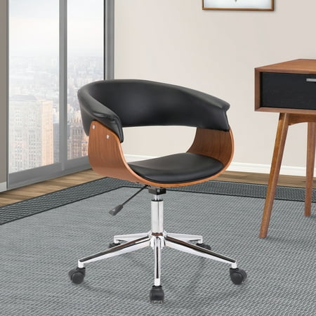Armen Living Bellevue Mid Century Office Chair In Chrome Finish With Black Faux Leather And Walnut Veneer