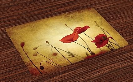 Ambesonne Poppy Place Mats Set Of 4 Poppies And Flower Buds On Ambient Dark Grunge Background With Retro Effects Bohemian Washable Fabric Placemats