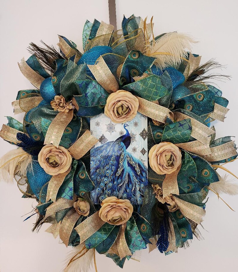 Peacock Wall Decor Peacock Wreath Peacock Decor Deco Mesh Etsy