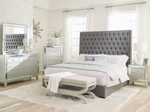 Details About Modern Silver Wood Gray Fabric Bedroom Suite Sophie 5 Pieces Queen King Set