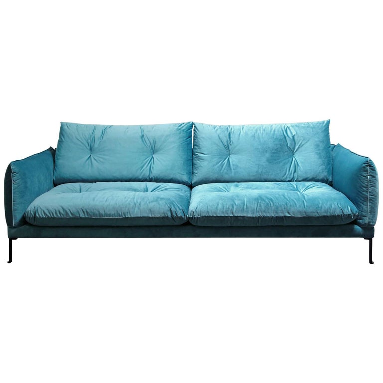 Santorini Handmade Contemporary Sofa Tufted Cushions Fabric Cover Metal Legs