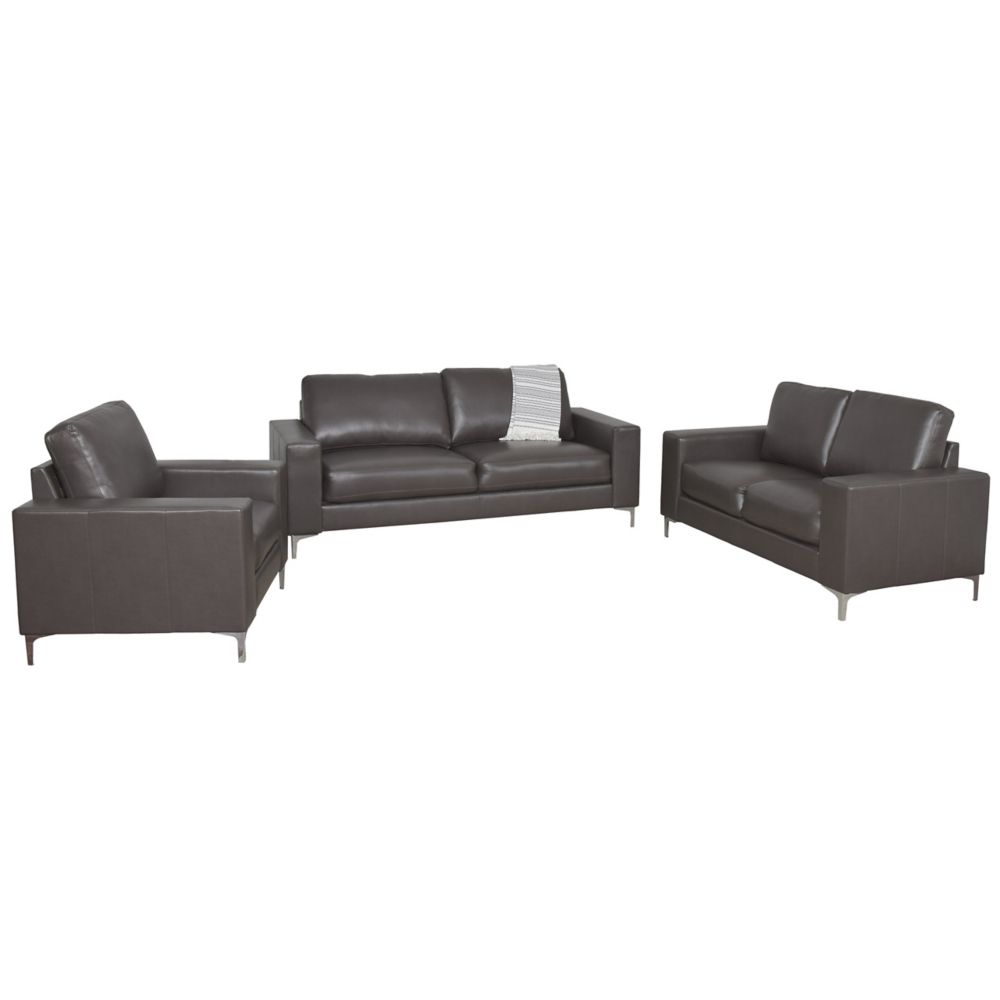 Cory 3 Piece Contemporary Brownish Grey Bonded Leather Sofa Set