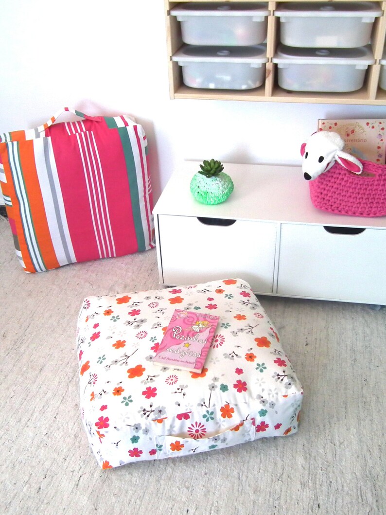Floral Square Floor Cushion Pouf And Pillow Set Kids Floor Etsy