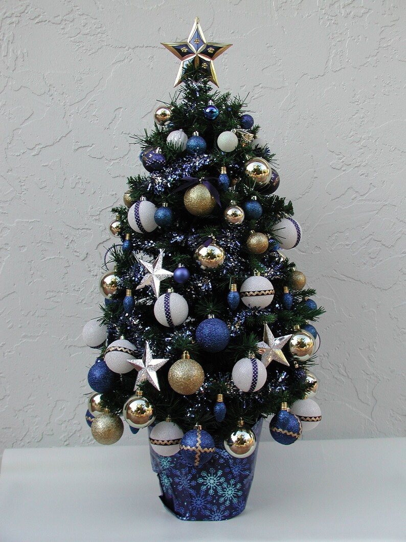 Christmas Entryway Tree Tabletop Tree Decorated Tree Blue Etsy