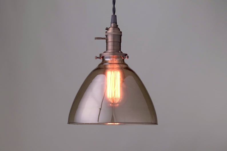 Smoked Glass Pendant Hanging Edison Light Industrial Etsy