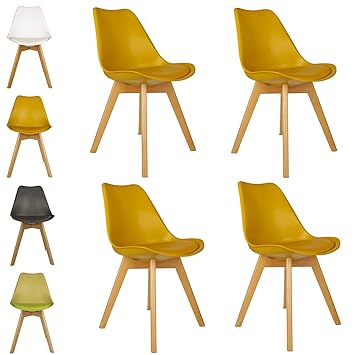 Cosy7 Luna Collection Jamie Tulip Inspired Modern Padded Dining Chairs Mustard Set Of 4 Solid Beech Wooden Legs Comfy Cushioned Pu Seat Well