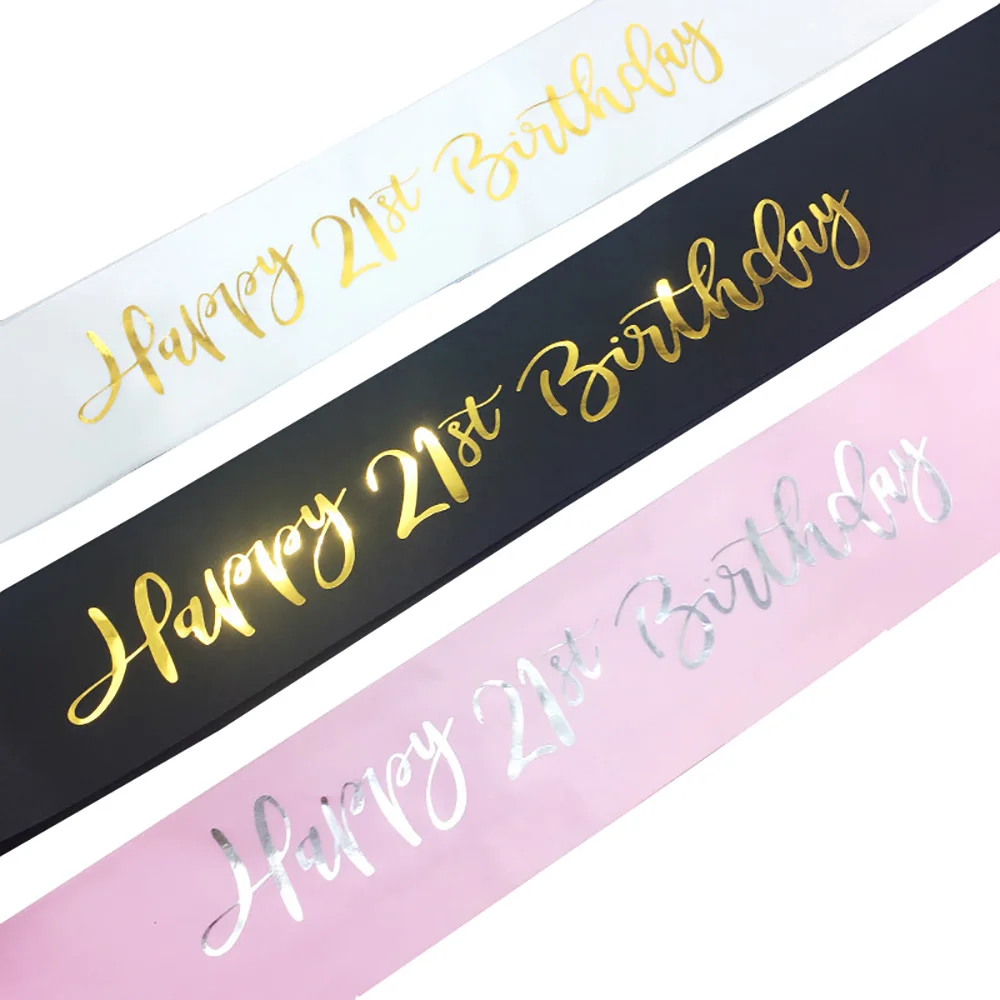 Us 1 29 Glitter Happy 21st Birthday Satin Sash For Girl 21st Birthday Party Decorations Supplies Ideas Favor Gifts Black White Pink In Party Diy