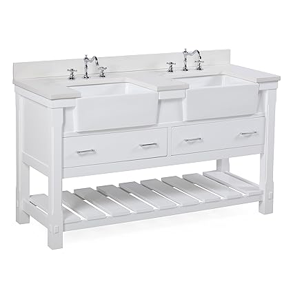 Charlotte 60 Inch Double Bathroom Vanity Quartz White Includes A White Quartz Countertop White Cabinet With Soft Close Drawers And White Ceramic