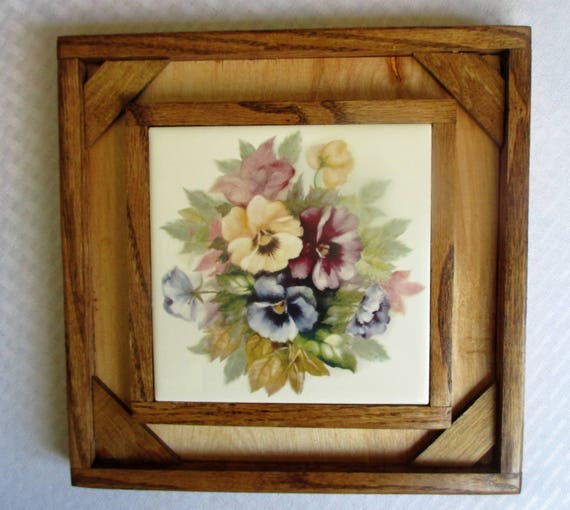 Pansies Pansies Flowers Floral Decorative Tile Tile Art Framed Tile Tile Wall Decor Wall Hanging Custom Tile Custom Frame Tile