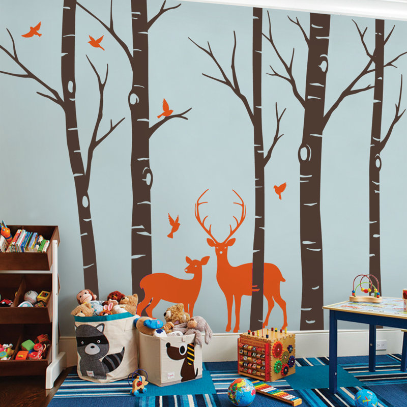 Birch tree wall decal birch and fir tree wall decal with birds and elk birch and fir forest for birch nursery kids or childrens room 021 17900 select options. As we all know trees are always standing for the vitality freshness pureness or something that is full of life or energy. Wall decal decor birch tree wall decals nursery decal vinyl wall decal for bedrooms or any room with birds terrific forest6 feet white soft pink by saniwa.