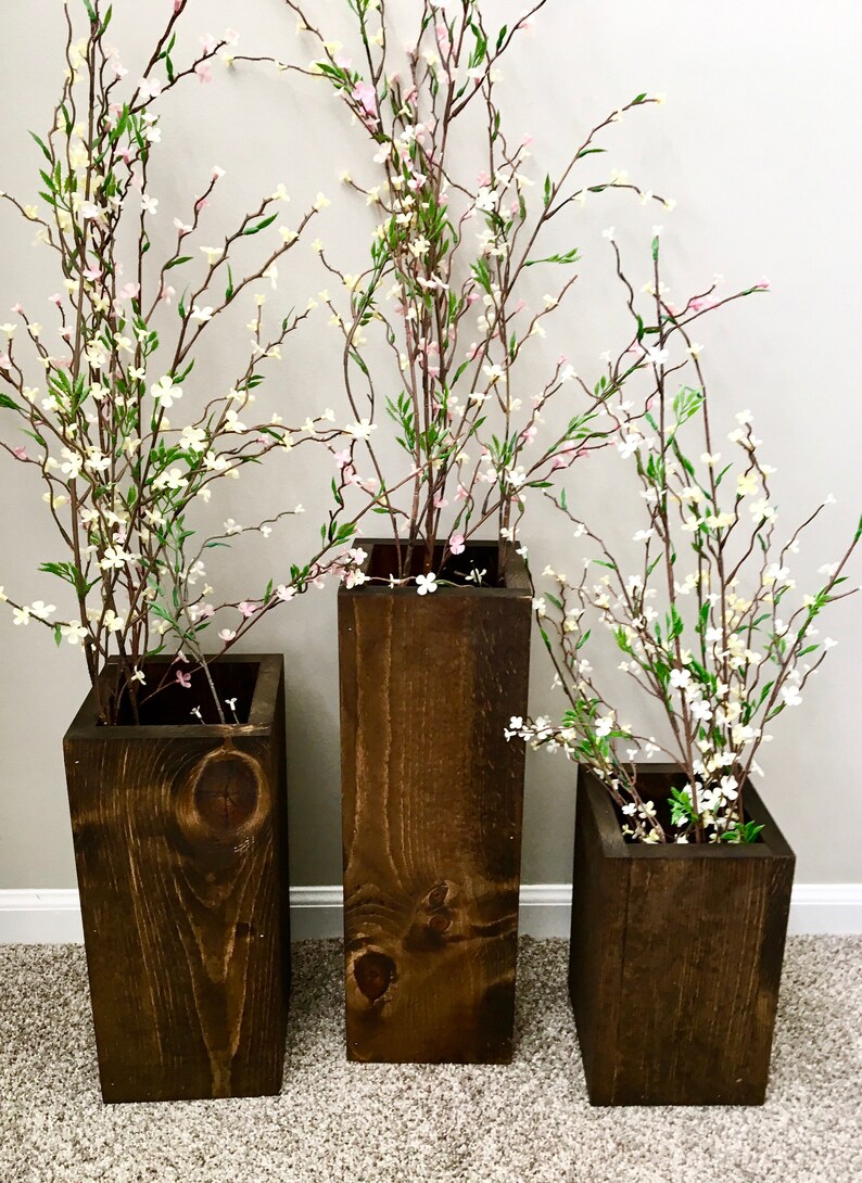 Wooden Vases Set Of 3 Rustic Floor Vases Farmhouse Decor Large Floor Vase Rustic Decor Porch Decor Outdoor Vase Spring Decor