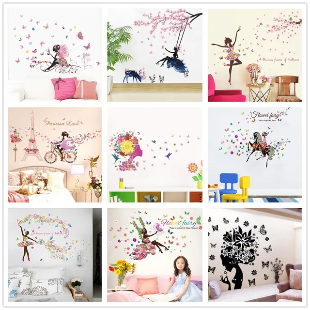 Diy Romantic Flower Fairy Swing Butterfly Wall Stickers Kids Room